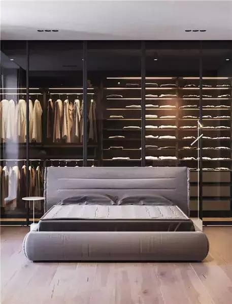 主臥內有一個玻璃墻構造而成的衣帽間。