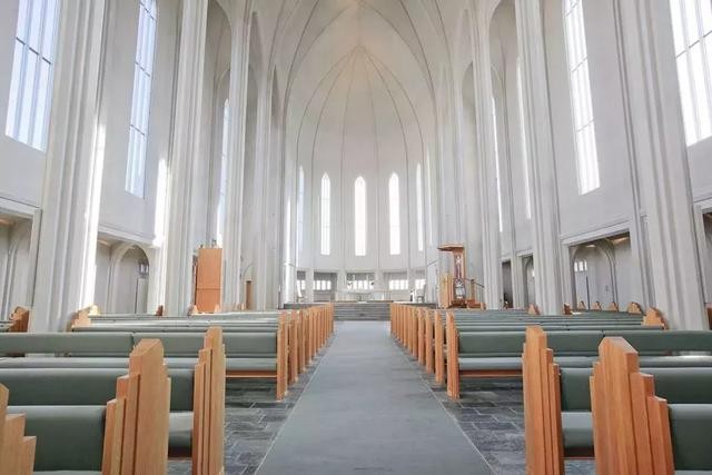 與歐洲許多教堂內(nèi)飾不同的是,哈爾格林姆斯教堂沒有過多繁雜的裝飾和色彩,大片的白色背景與簡約的設(shè)計(jì),只給人純凈、優(yōu)美的感受。