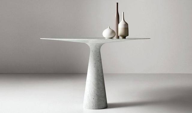 大理石經(jīng)常出現(xiàn)在廚房裝飾中,由于其優(yōu)雅和耐用的特點(diǎn),大理石臺(tái)面是最常見的臺(tái)面之一。那么,為什么不把這種高貴的石頭應(yīng)用到用餐區(qū)呢?在這里,我們可以更自由地塑造非傳統(tǒng)形狀的大理石臺(tái)面以及創(chuàng)新的外觀。盡管傳統(tǒng),大理石實(shí)際上是能最好地詮釋當(dāng)代設(shè)計(jì)的石材之一:其紋理的顏色和形狀,冷而光滑的表面,是美學(xué)創(chuàng)新靈感的源泉。像這樣的餐桌,一定會(huì)爭足了風(fēng)頭,成為整個(gè)家居裝飾的主角。