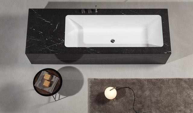 在浴室中使用大理石更傳統(tǒng),但效果顯著。地板、垂直瓷磚、立柱式洗臉盆、大浴缸以及各種細(xì)節(jié)都能使整體環(huán)境呈現(xiàn)高級(jí)感和散發(fā)永恒的魅力。如果你正在尋找一些不太傳統(tǒng)的東西,可以考慮一下選擇黑色大理石和方形線條設(shè)計(jì),如下圖。最后的效果看起來大膽而獨(dú)特,兼具大理石帶來的優(yōu)雅和高貴。