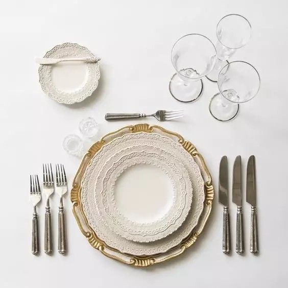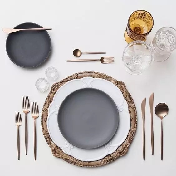 精致優(yōu)雅的餐盤搭配大小不同的刀叉,就算不吃飯,也超級(jí)養(yǎng)眼!