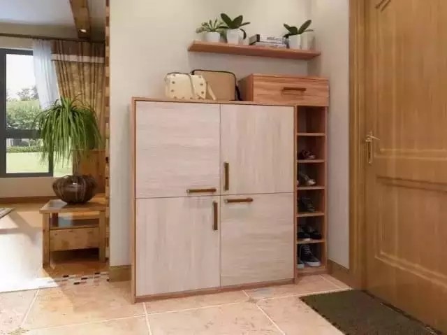 柜體上部分設計為開放式層架,既滿足鞋收納需求又能擺放書或其他飾品,美觀大方。