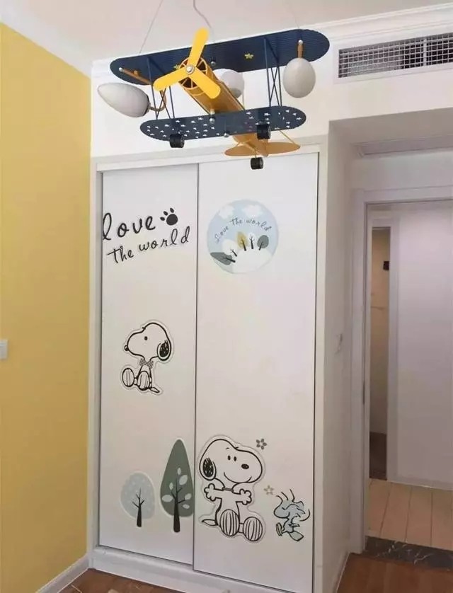 而對(duì)于家中兒童房的衣柜,還可以在上面貼上一些有趣又可愛的圖案,孩子一定也會(huì)喜歡的。當(dāng)然,至于具體貼什么,你可以征求孩子的意見!