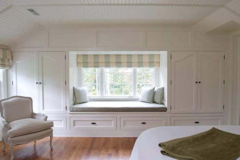 但如果用厚實(shí)的布藝窗簾,會(huì)讓房間變得黑壓壓,影響居住者的心情,所以建議在正常遮光窗簾的基礎(chǔ)上,多加一層輕薄透氣防UV的紗簾。