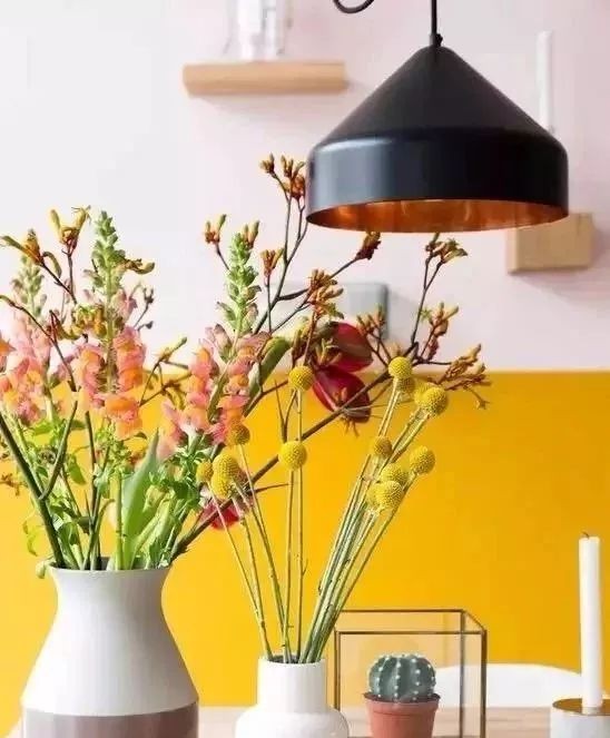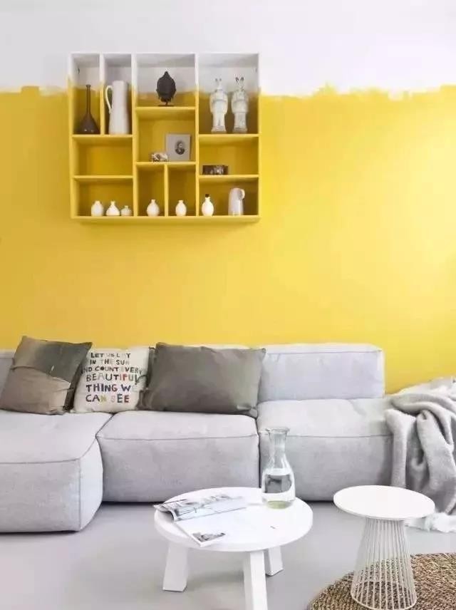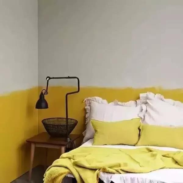 黃色雖然很亮眼,但也會讓人晃眼,尤其那么一整面墻的黃,看久了就有視覺疲勞;變成半面黃色,既讓你家有了明亮的色調,又不會看久了審美疲勞。