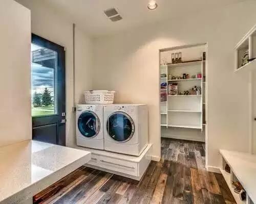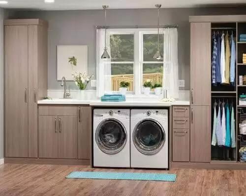 在設計一個家庭一站式洗衣間時,首要事情就是選擇合適的位置,通常,家里有地下室的小伙伴可能會將地下室改為洗衣房。其他的或是選在衛(wèi)生間旁邊,這樣洗完澡就可以直接把衣物扔進洗衣機清洗,省時省力;或是把洗衣間裝在廚房和陽臺。洗衣間采光好也是很重要的,若是在陽面的話晾曬也可以一步解決。