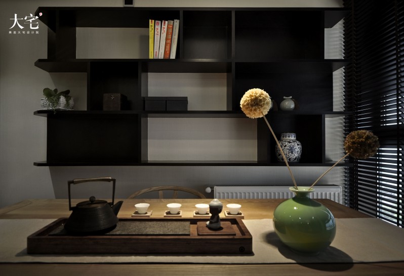 規(guī)避了濃墨重彩裝飾的書房,巧克力茶色懸式書架、原木色的桌椅、羅列整齊的茶具,所有的裝飾點綴的恰到好處,既不沉悶,也不浮躁,滿滿詩意的空間里彌漫著清幽淡雅的書香味,而且時間愈久愈散發(fā)出迷人的東方雅韻。