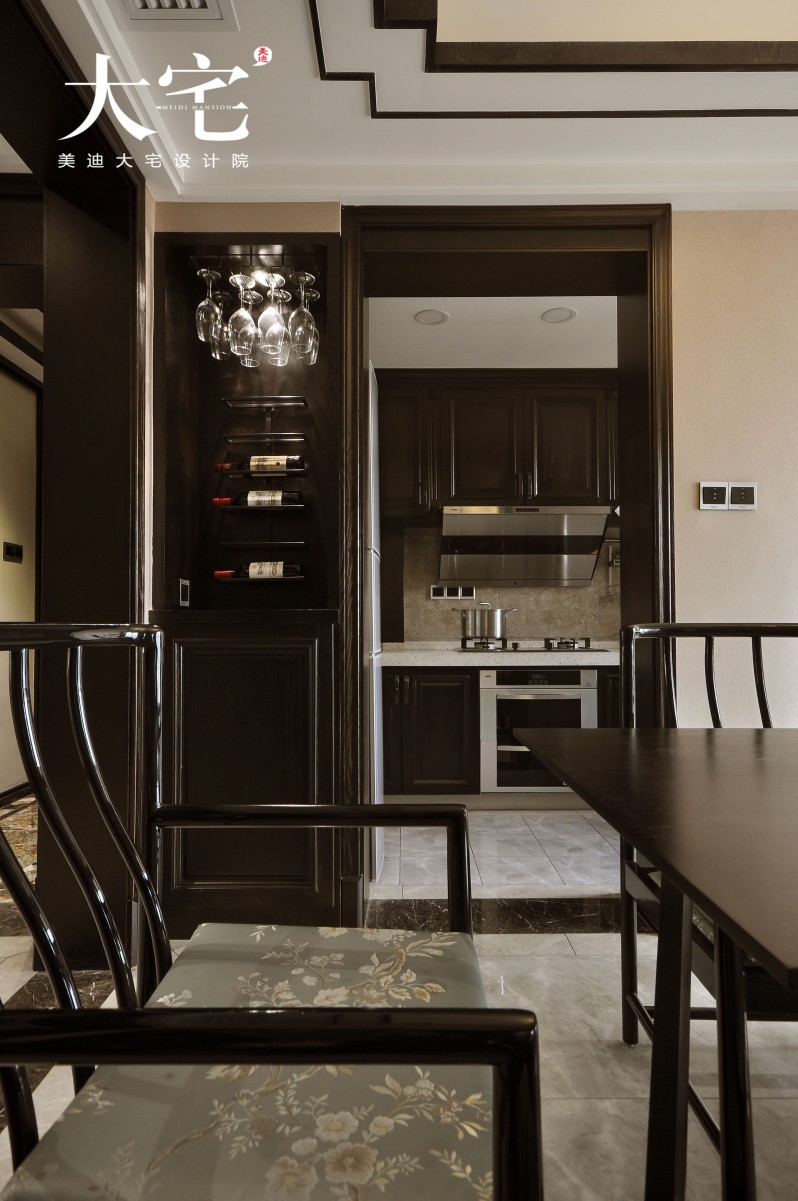 ▲餐廳旁的紅酒柜設(shè)計和廚房設(shè)計都是為了提高運用在生活中的方便性。