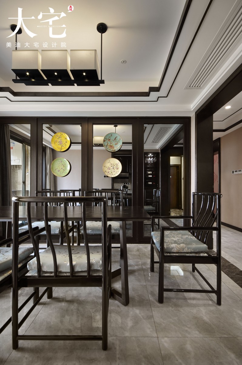 ▲餐廳沒有復(fù)雜的結(jié)構(gòu)造型,選用中式家具,傳統(tǒng)的木質(zhì)茶幾、座椅用現(xiàn)代的手法將線條細化,既有文化底蘊又不會過于沉重。