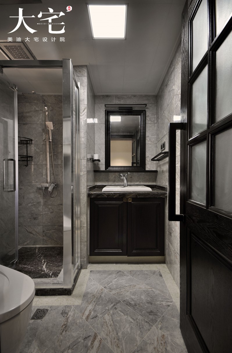 ▲衛(wèi)生間用灰色系的大理石打造成一個深淺不一的紋理就像有故事的空間,清新淡雅。