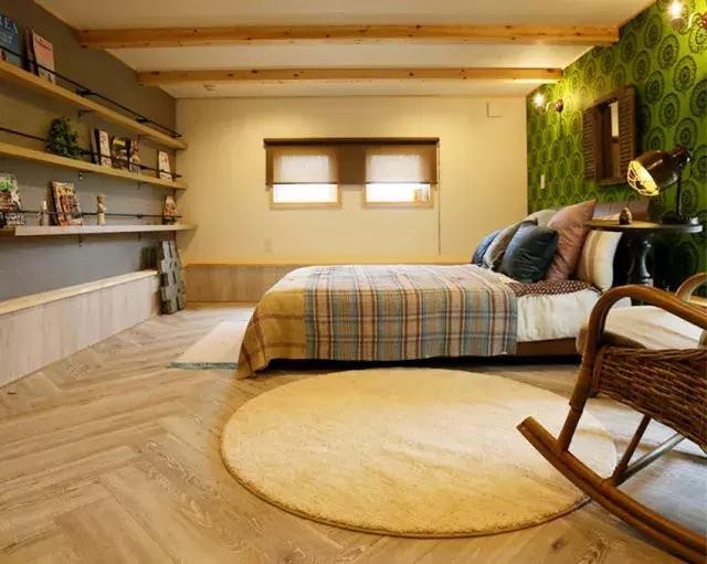日式的雜貨鋪風格最主要的特點就是原木的大肆運用,柜子、餐桌、床、地板等,目光所及之處幾乎都是原木,這套70平公寓的空間布置就很好的詮釋了這一特點。