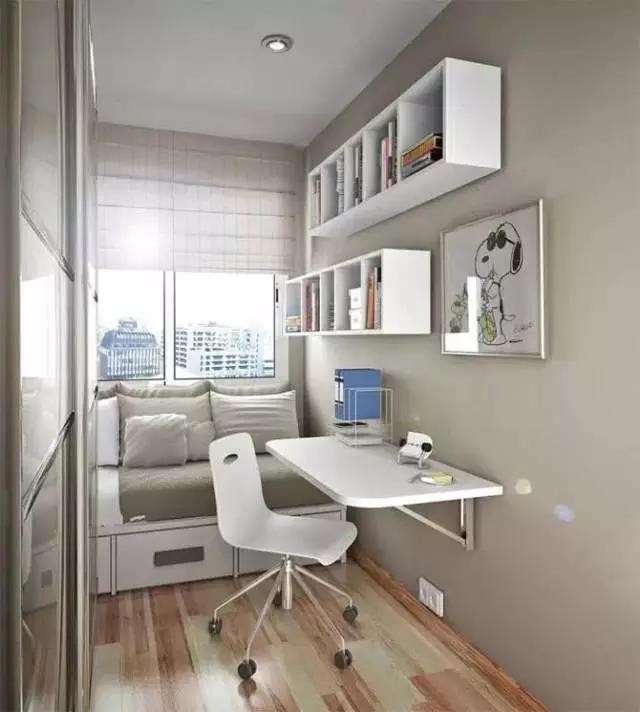 絕對沒有地方擺下一張辦公桌?沒關系,只要你還能擺上一張床。對于十幾二十平的小空間來說,閣樓床無疑是最好的選擇。只要一小片空間,睡覺,辦公,收納都能一次性解決。下床后就可以穿上睡衣安靜的辦公。