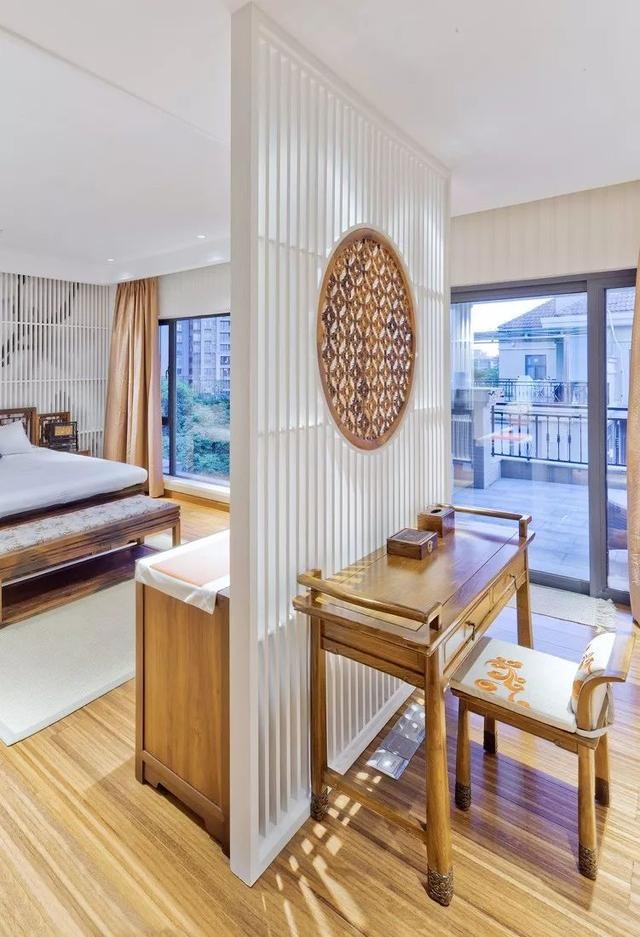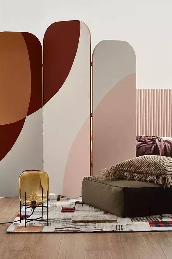如果不喜歡擺個(gè)諾大的柜子,或者空間有限,那么就可以考慮放個(gè)小屏風(fēng)隔一隔空間,貌美的屏風(fēng)隔斷絕對(duì)能為你的空間增添不少姿色 ~