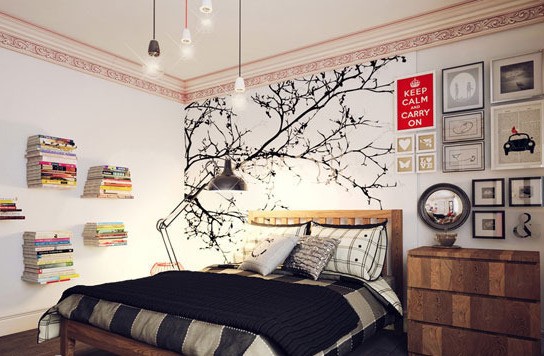 臥室床頭吊燈不僅能解放出床頭柜面上的空間,如果設(shè)計別致,還能提升臥室格調(diào)。那些別致的床頭吊燈,它們或嫵媚或陽剛、或可愛或充滿創(chuàng)意,而臥室也隨著不一樣的吊燈展現(xiàn)出不一樣的情調(diào)。這個床頭風(fēng)景的設(shè)計結(jié)合了很多的自然元素,以樹狀做床頭柜,以竹籬笆裝飾墻頭墻面,清新自然。
