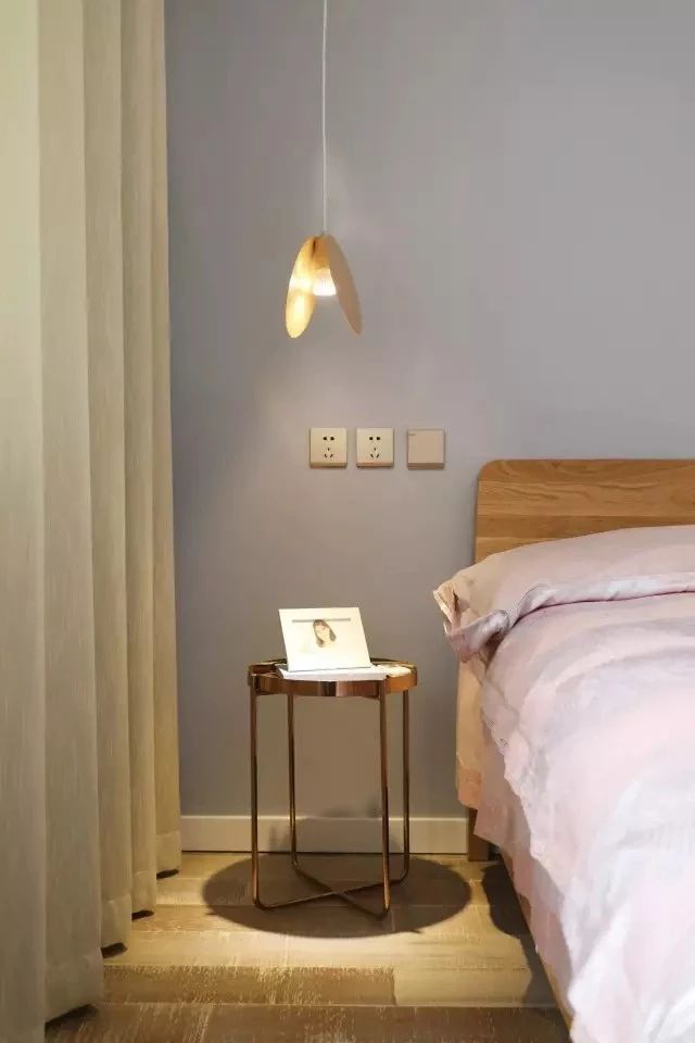 △如果兩邊都安裝床頭燈,盡量是一個(gè)床頭燈,一個(gè)控制開(kāi)關(guān),并且盡量燈的開(kāi)關(guān)設(shè)置在兩人中間的位置,這樣兩人使用比較方便。