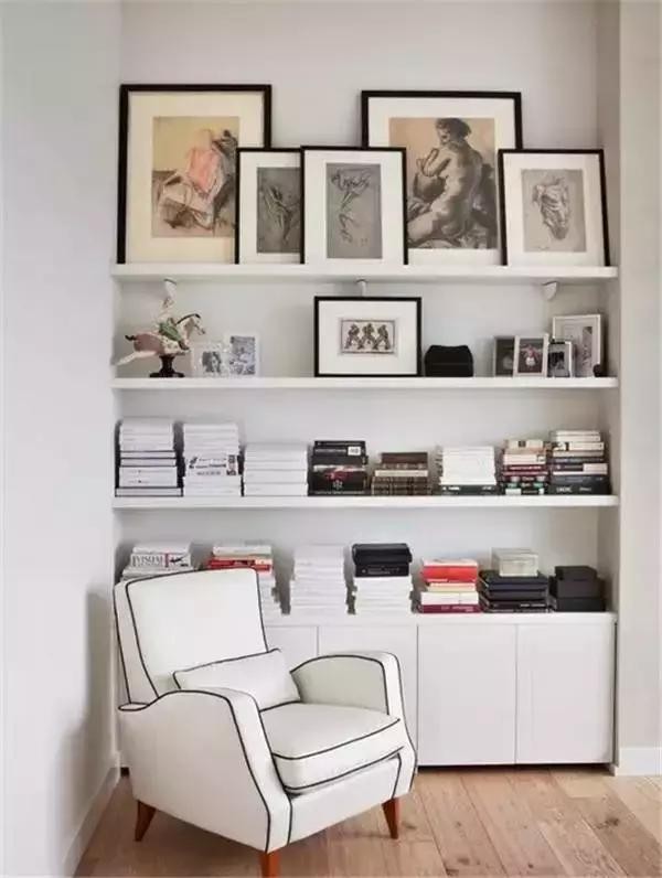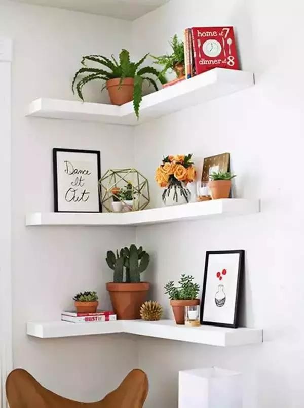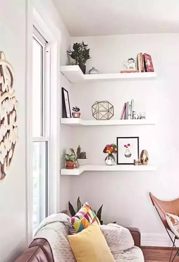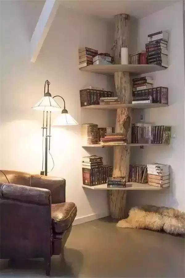 利用墻角打造一個(gè)書架,既節(jié)約了空間,也增添了家里的藝術(shù)氣息。