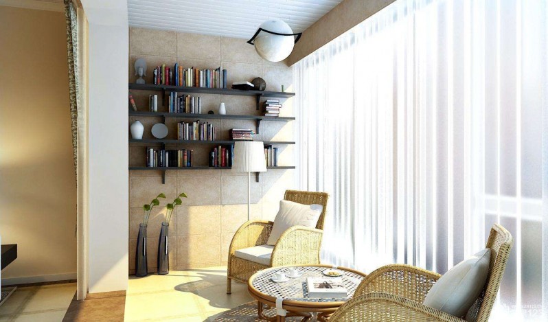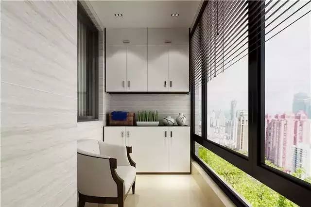 如果是室內(nèi)陽臺,那么就只好用作休閑了。吧臺、座椅、儲物柜,陽光、窗簾、休閑一整天。