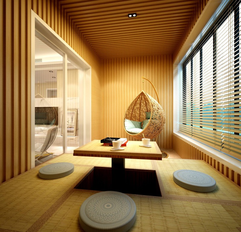 利用小小的轉(zhuǎn)角,讓這里成為家中的休閑勝地。另一邊也可以養(yǎng)小植物,晾衣服也可以的,不過要記得換一種地面材質(zhì)。