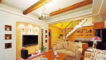 七十平米的復式樓客廳可以做成挑空的,墻面可以用溫暖的黃色,茶幾和電視柜的顏色和款式可以選素一些的,比較好清洗,而且比較耐臟,沙發(fā)可以選擇亮色一點的,作為客廳的一個亮點。