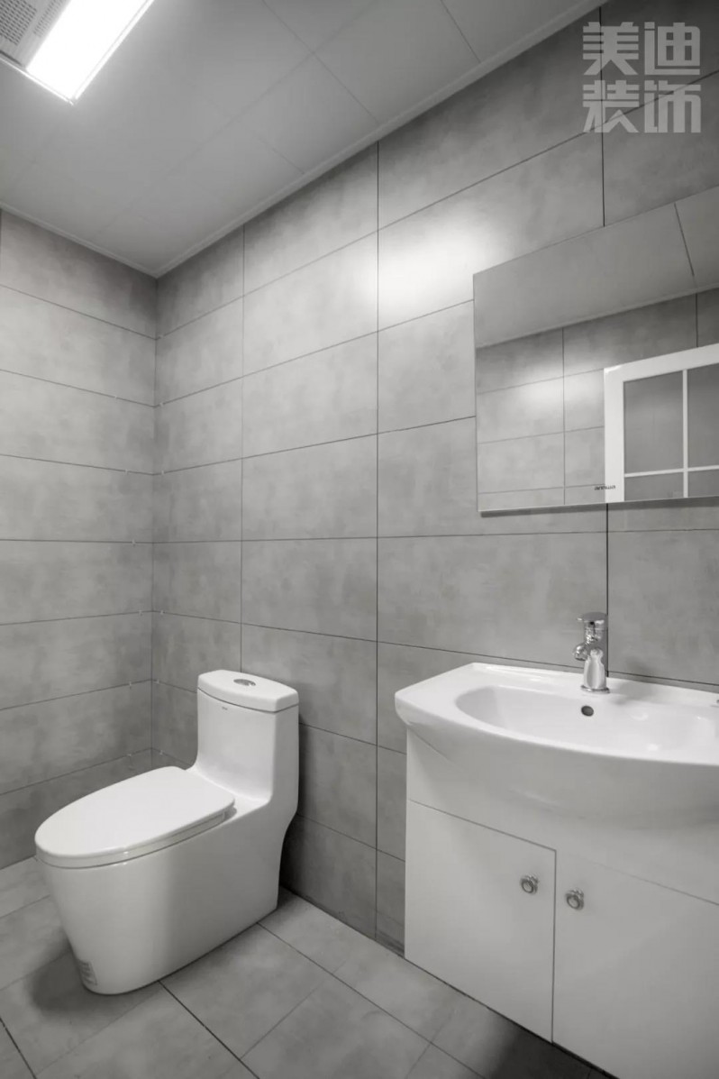 衛(wèi)浴間不需要很大,但一定要做好收納。干凈利落的線條,簡潔明快的色調(diào),以及方磚呈現(xiàn)出的清雅質(zhì)感,溫馨干凈。