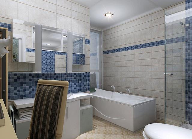 ▲衛(wèi)生間給人一種藍(lán)色的海洋感,甚是清爽。不僅做了干濕分離,還合理的利用空間設(shè)置了浴缸