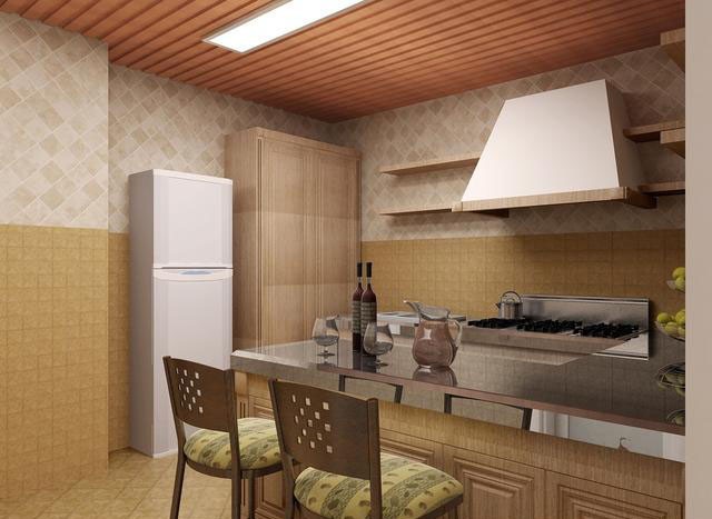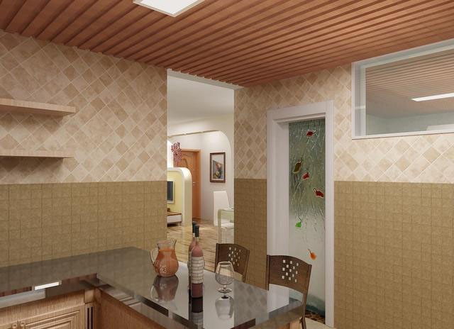 ▲開放式廚房貌似被隱藏了起來,人少的時(shí)候,桌臺(tái)也能被當(dāng)成吧臺(tái)使用,配合暖色的廚房吊頂,很是浪漫