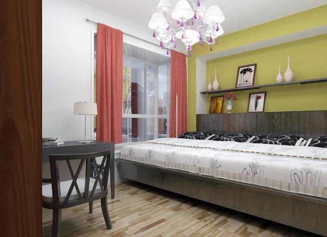 ▲進(jìn)入臥室又是另一番心情,跳躍式的黃色背景墻撞上了橘紅色窗簾