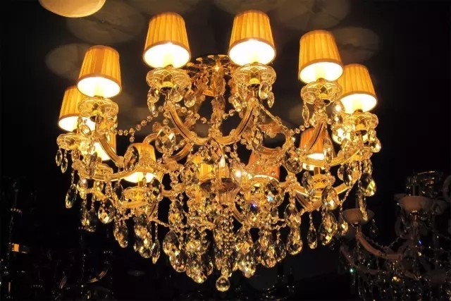 富麗細(xì)碎的水晶燈是最佳的選擇。可以挑選一些外形線條柔軟或光線柔軟的燈。