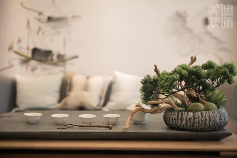 在喧囂的都市,伴隨著快節(jié)奏的生活,休息日的時候,你是否也不愿出門,就安靜的在家“宅”一天。我們需要的是“詩意的棲居”,因此設(shè)計師將對山水意境的思考作為本案主體思想,貫穿設(shè)計的始終。