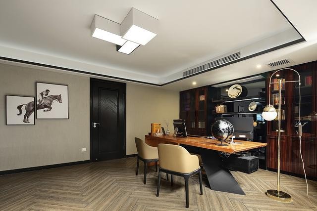 黑白灰加上木質(zhì)寫字桌的搭配,更具輕奢感。