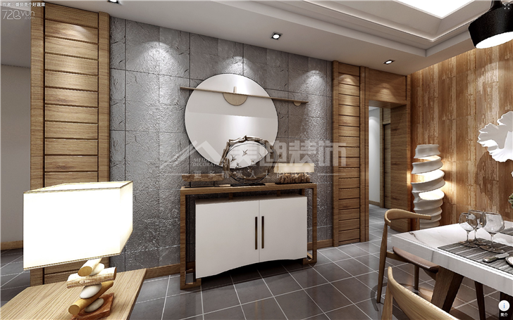 整個空間給人古風(fēng)、淡雅的感覺,空間沒有主燈是現(xiàn)代風(fēng)格的融入。