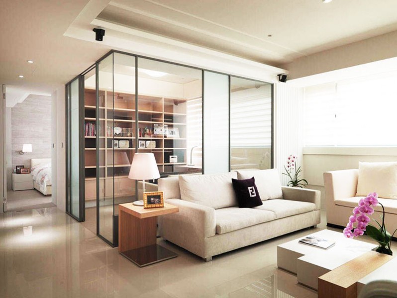 ▲玻璃門是比較常見的隔斷方式,優(yōu)點(diǎn)在于玻璃的透明不會(huì)影響被分割的兩個(gè)空間都能有很好的采光,尤其以細(xì)窄邊的框架更顯秀美。