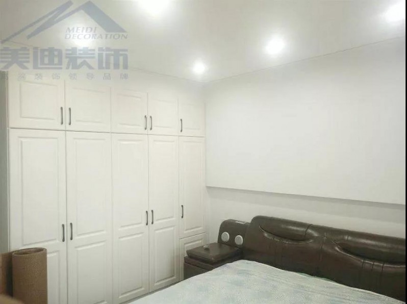 臥室的配色也繼續(xù)以白色為主色調,白色的柜子搭配上深色的床具,深淺不一,卻也極度融合。