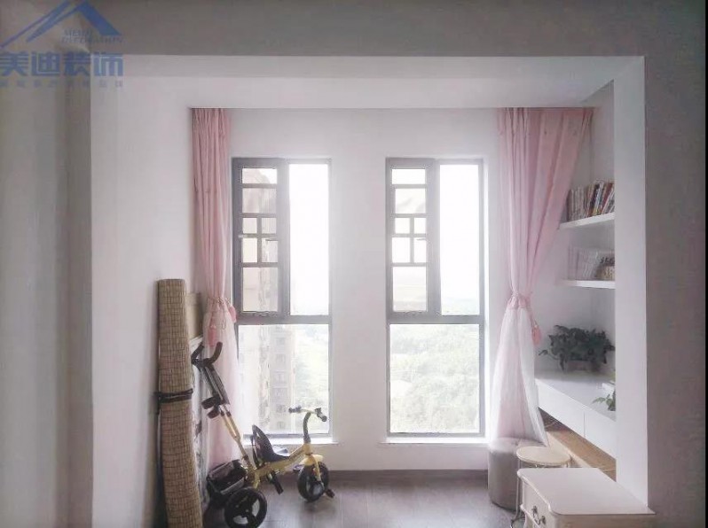 兒童房的配色明顯活潑了許多,粉色的窗簾、白色的書柜和原木色的小椅子,與之前的黑白灰家具不同,它們充滿了活力。房間的采光也很好,對孩子們的學習與成長也有很大幫助。