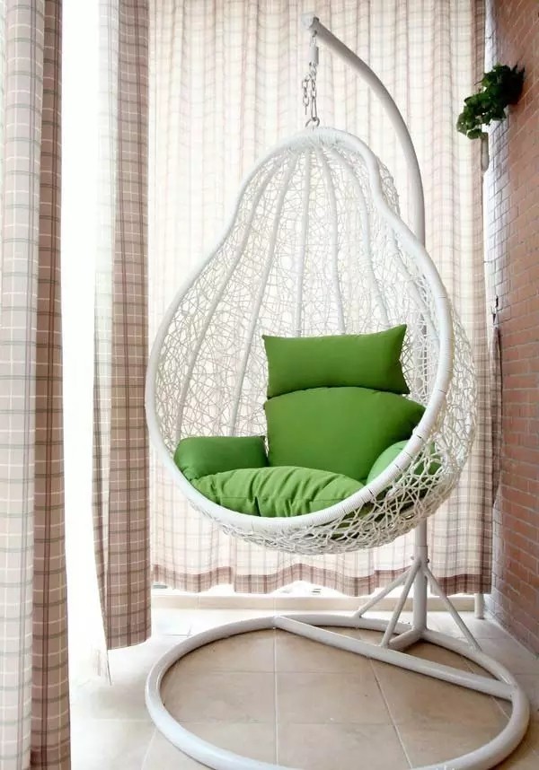 在臥室陽(yáng)臺(tái)的角落放置一個(gè)這樣的秋千椅,閑暇時(shí)分窩在上面,浪漫又愜意。