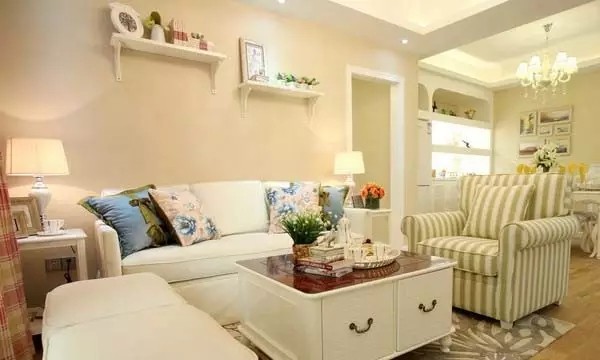 浪漫的白色家私唯美清新,淡雅的空間色彩搭配,韓式田園風(fēng)格的客廳給人一種舒適、溫馨的感覺(jué)。