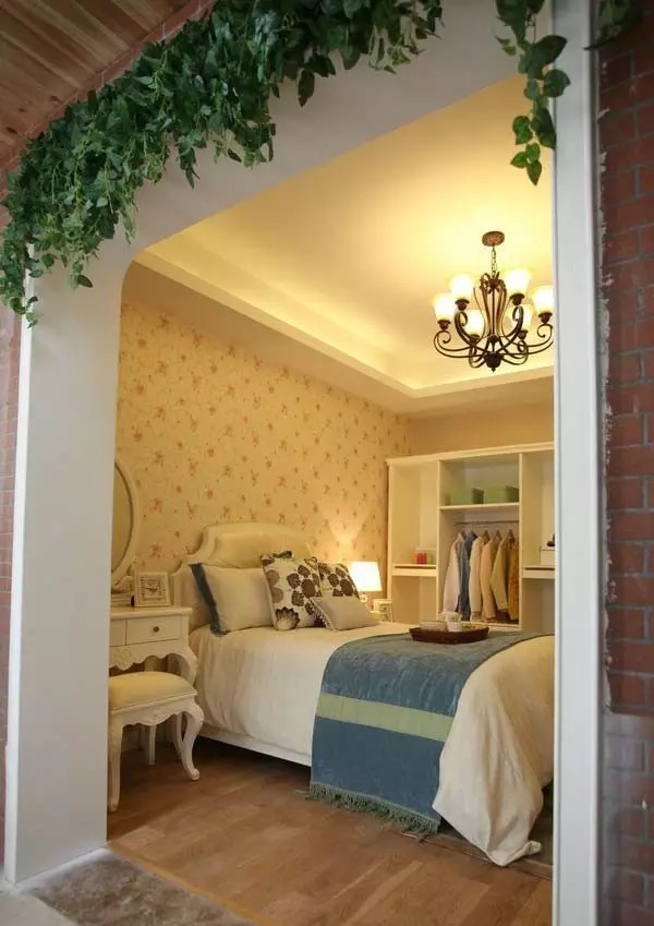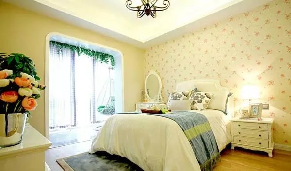 米黃色碎花墻紙和白色家具搭配自然,浪漫清新。