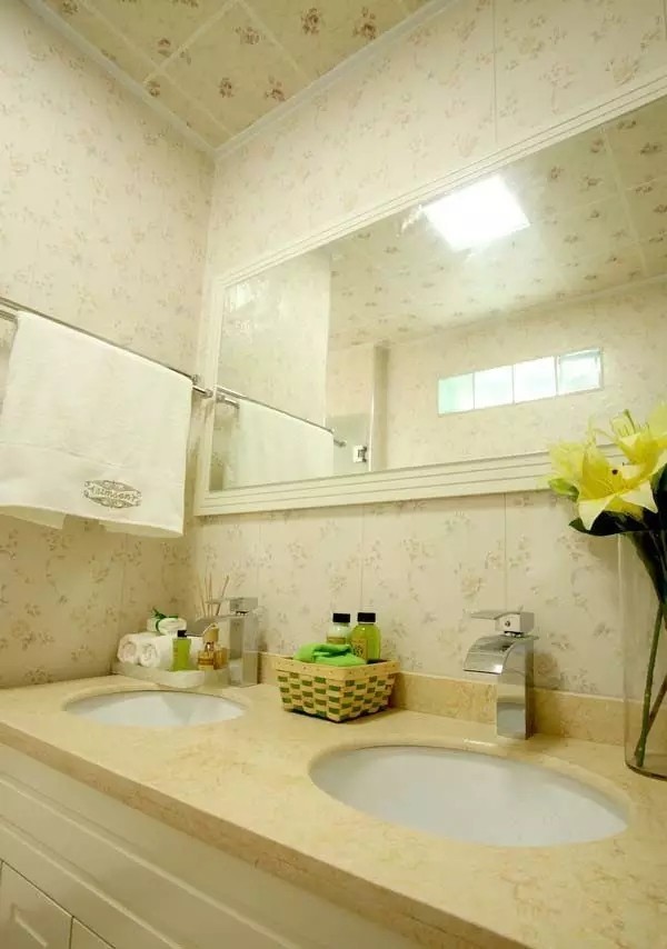 米白色的碎花瓷磚將濃濃的田園之色融入到衛(wèi)浴空間中。