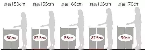 舒適的櫥柜高度=身高/2+5~10 (cm),對應(yīng)下圖: