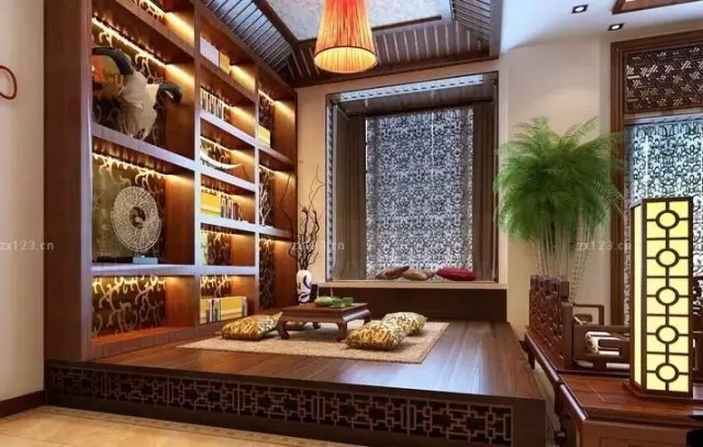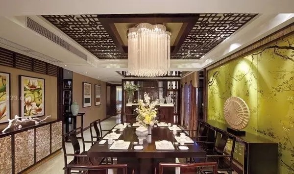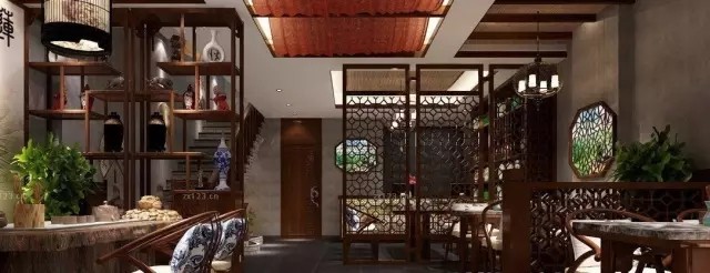 6、天花:中式風(fēng)格裝修的經(jīng)典就是格子了,天花也不例外,利用木條相交成方格形,上覆木板,有條件的連窗格也是這樣的,當(dāng)然,如果條件有限,也可做簡(jiǎn)單的環(huán)形的燈池吊頂,用實(shí)木做框,層次清晰,漆成花梨木色。