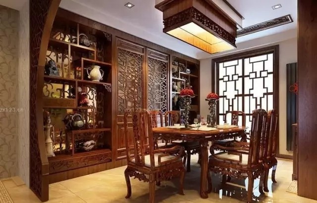 2、木與精美雕刻。說到中式裝修的特點(diǎn),不得不說到木質(zhì)品在中式風(fēng)格中的運(yùn)用。以木為主要的材料的裝修設(shè)計(jì)的典型代表就是重視裝修風(fēng)格,中式風(fēng)格引用了明清時(shí)期木雕的手法,將木雕等裝飾物引用在中式家居環(huán)境中,展現(xiàn)出了更加沉穩(wěn)、內(nèi)斂的氣質(zhì)。在中式裝修風(fēng)格中隨處可見的木制品和令人驚嘆的雕刻技藝就成為了中式裝修不可或缺的元素。