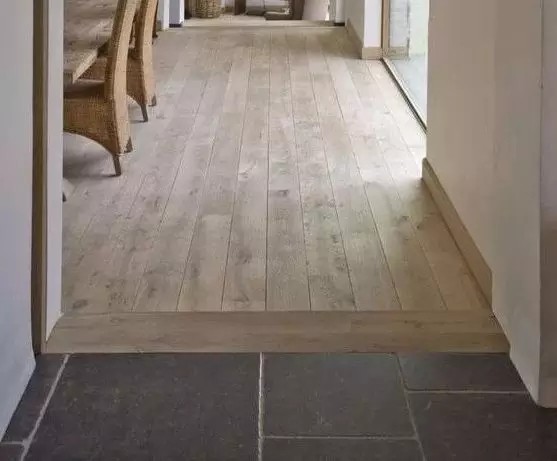如果你家是兩種不同的瓷磚鋪貼在一起,那就比較簡(jiǎn)單,基本可以不用做門檻石;如果是木地板拼瓷磚,那么將木地板橫過(guò)來(lái)當(dāng)門檻石更好看。