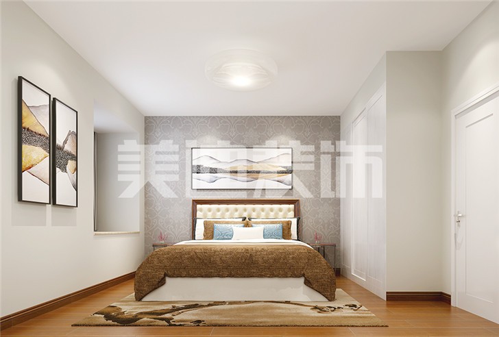 臥室的設(shè)計(jì)十分的有格調(diào),床選用了深色實(shí)木的板材,在床軟的設(shè)計(jì)上選用了淺棕色系,地面也以實(shí)木木材為鋪墊,這樣一來(lái),深淺的結(jié)合使空間更加具有視覺(jué)效果,設(shè)計(jì)師在地毯上也費(fèi)了不少工費(fèi),選用了帶有圖案的地毯,使整個(gè)空間看起來(lái)更加的柔和。