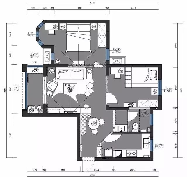 沙發(fā)墻的右側(cè),還裝了一扇隱形門,以灰色主題搭配線條處理,帶給人的是一種獨(dú)特的設(shè)計(jì)感。