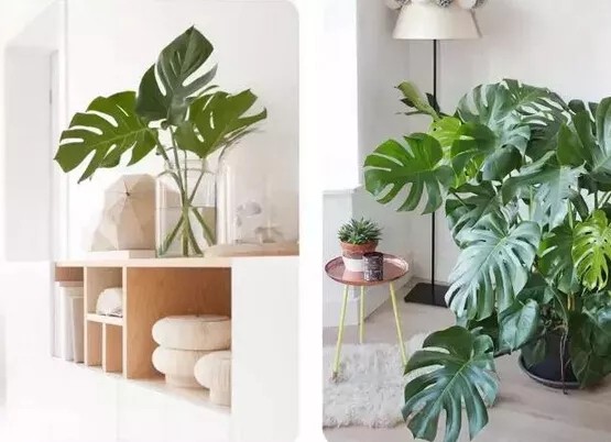審美:龜背竹株形優(yōu)美,葉片形狀奇特,葉色濃綠且富有光澤,是有名的室內(nèi)大型盆栽觀葉植物,大盆栽培于家中頗有熱帶風(fēng)情。
