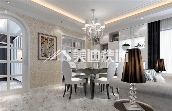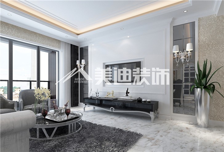 空間氛圍鮮亮明朗,客廳空間互動(dòng)性強(qiáng),墻紙是新古典主義裝飾風(fēng)格中重要的裝飾材料,金銀漆、亮粉、金屬質(zhì)感材質(zhì)的全新引入,為墻紙對(duì)空間的裝飾提供了更廣的發(fā)揮空間。新古典裝修風(fēng)格的壁紙具有經(jīng)典卻更簡約的圖案、復(fù)古卻又時(shí)尚的色彩。