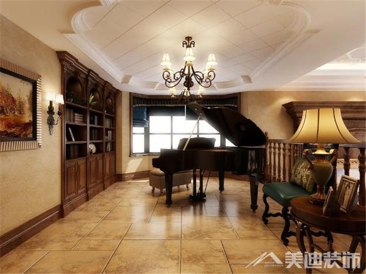 其實書柜設(shè)計別致實用,桌上的燈飾看起來也美觀大氣,地板顏色與桌椅相搭配,顯得有條理,給人舒適的感覺,落地窗是房間明亮,透光性增強,藍綠色的窗簾及純白色的墻壁,讓房間的亮度變得飽和不刺眼,房頂?shù)臒麸椩煨酮毺?可以更加充分的增加房間的亮度,房間整體簡單而典雅。