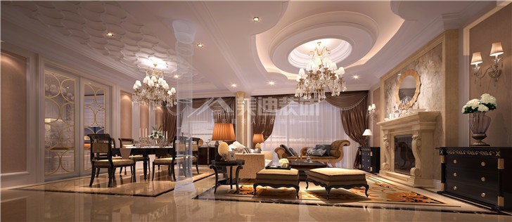 首先,我們來看第一種法式裝修樣板間,這個案例的戶型面積為240平米,采用淺色系進行詮釋。話不多說,先欣賞吧。