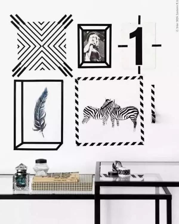 ▲ 適用于墻面局部裝飾。建議可以先用鉛筆在墻上描好邊定好圖案,然后再貼紙膠帶,這樣能有效避免貼錯(cuò)