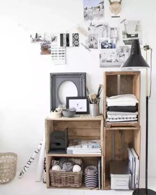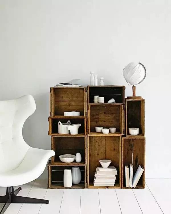 這個(gè)你們肯定都見過,在水果市場經(jīng)??梢钥吹?,就是用來裝水果的木箱子。平凡的木箱子經(jīng)過創(chuàng)意組合搭配,分分鐘成為高逼格家居